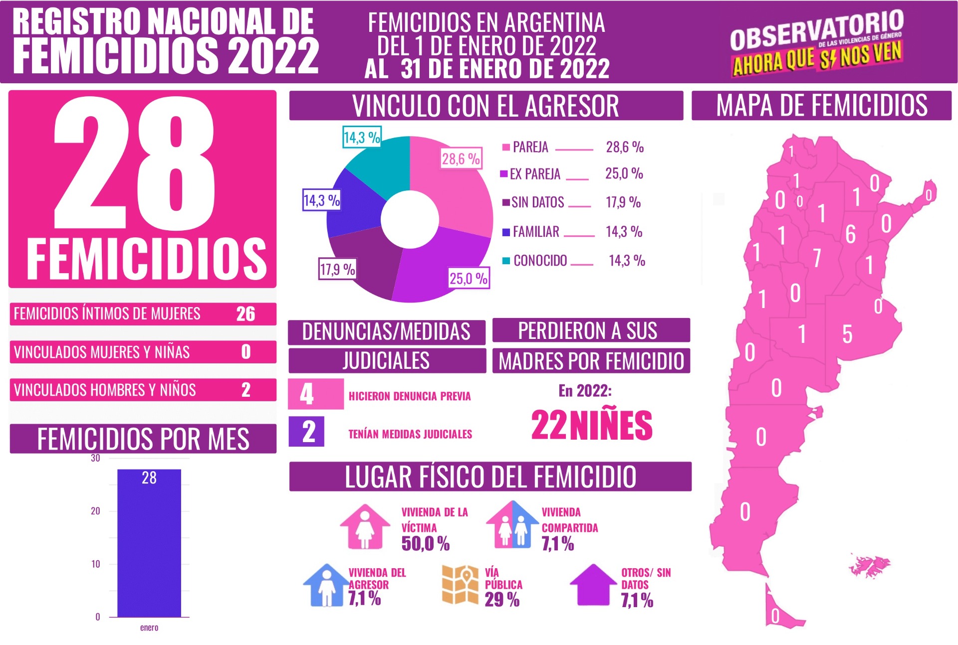 28 femicidios en enero 2022